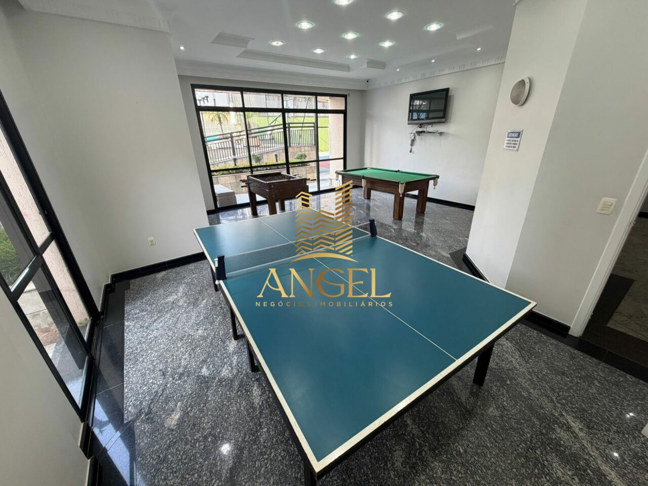 Lazer completo dentro do condomínio com piscina aquecida, salão de festas, churrasqueira, forno de pizza, sala de ginástica, sala de jogos, sauna, playgroud e quadra esportiva. Portaria 24 horas e sistema de vigilância com câmeras e reconhecimento facial e gerador de energia próprio.