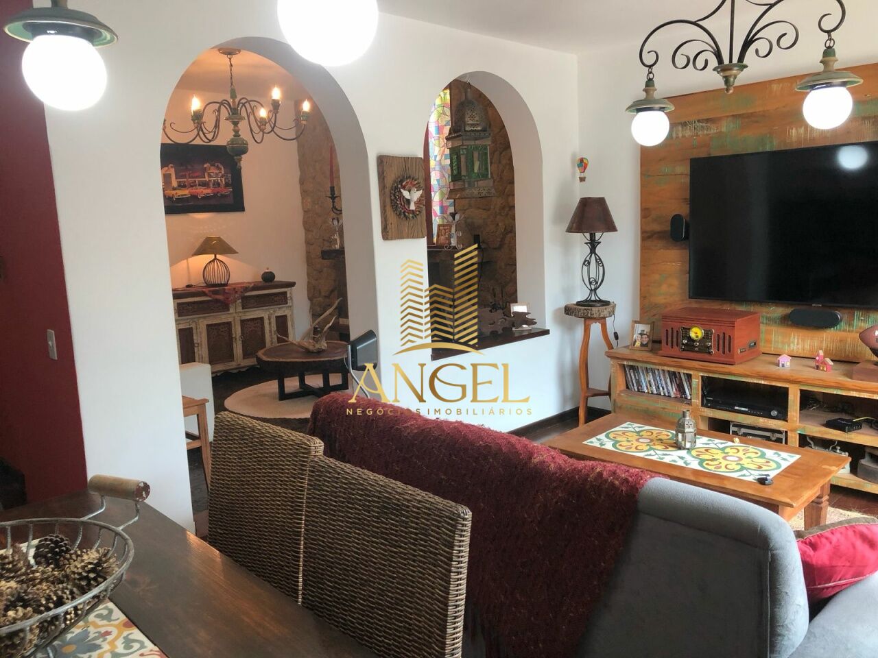 Esta casa possui 3 quartos, sendo uma suíte, e conta com um total de 1 banheiro e 1 lavabo. O espaço é ideal para quem busca conforto e praticidade, com uma sala de lareira aconchegante, além de 3 amplas salas: uma de jantar, uma de TV (conjugada com a sala de jantar) e mais uma, criando um ambiente perfeito para diferentes momentos. A cozinha é funcional e bem planejada, atendendo a todas as necessidades da sua rotina.